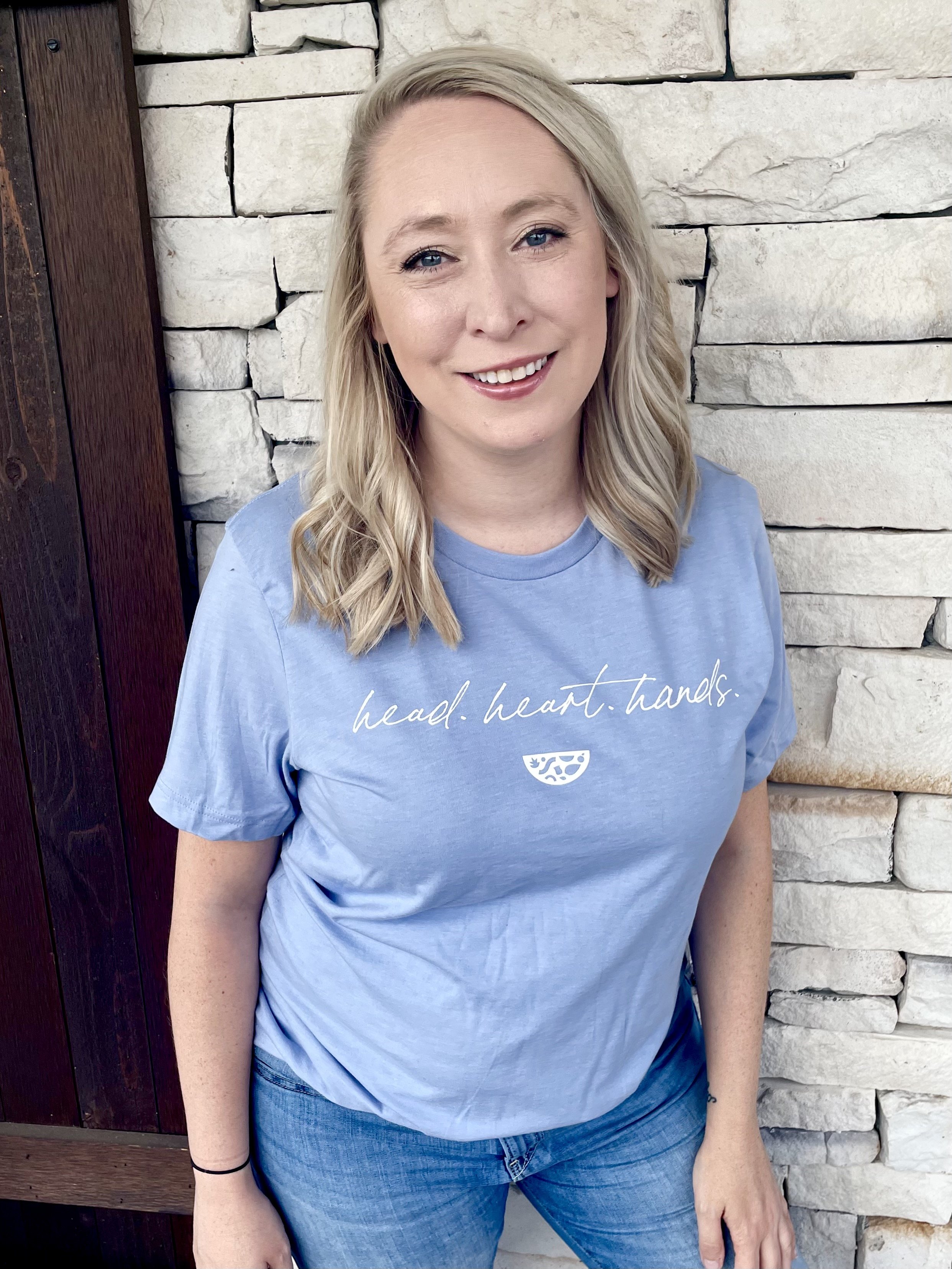 Shop › Head. Heart. Hands. T-Shirt in Heather Blue Image 1 of 2 Image 2 of 2 Head. Heart. Hands. T-Shirt in Heather Blue from $18.00 Bella/Canvas Brand, Unisex Sizing, Color: Heather Blue Size: Select Size Small Medium Large X-Large XX-Large Quantity: Add To Cart Added! Bella/Canvas Brand, Unisex Sizing, Color: Heather Blue